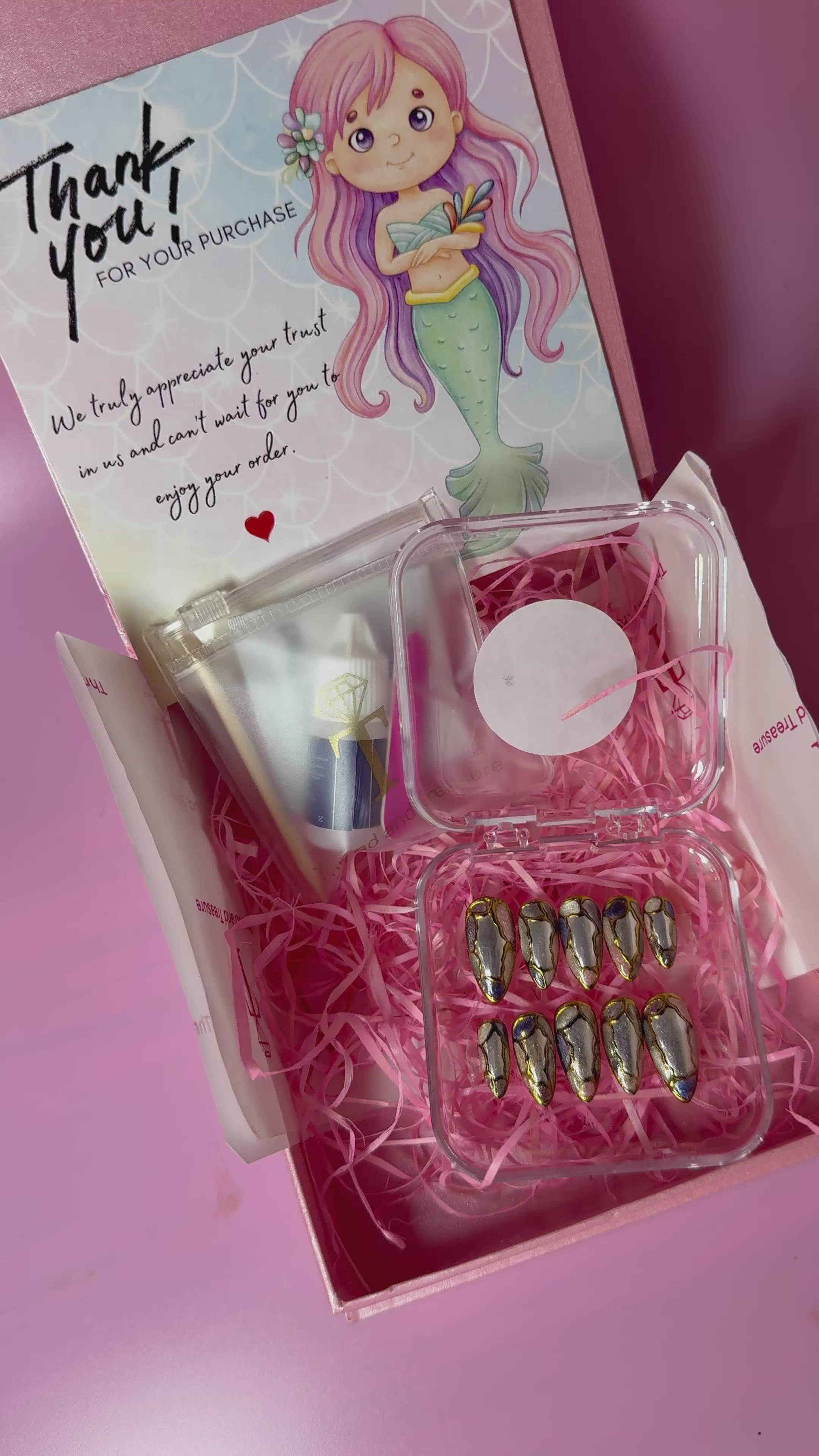 High-shine chrome meets luxe stained-glass art. This handcrafted press-on set is bold, edgy, and made to turn every hand movement into a power move.